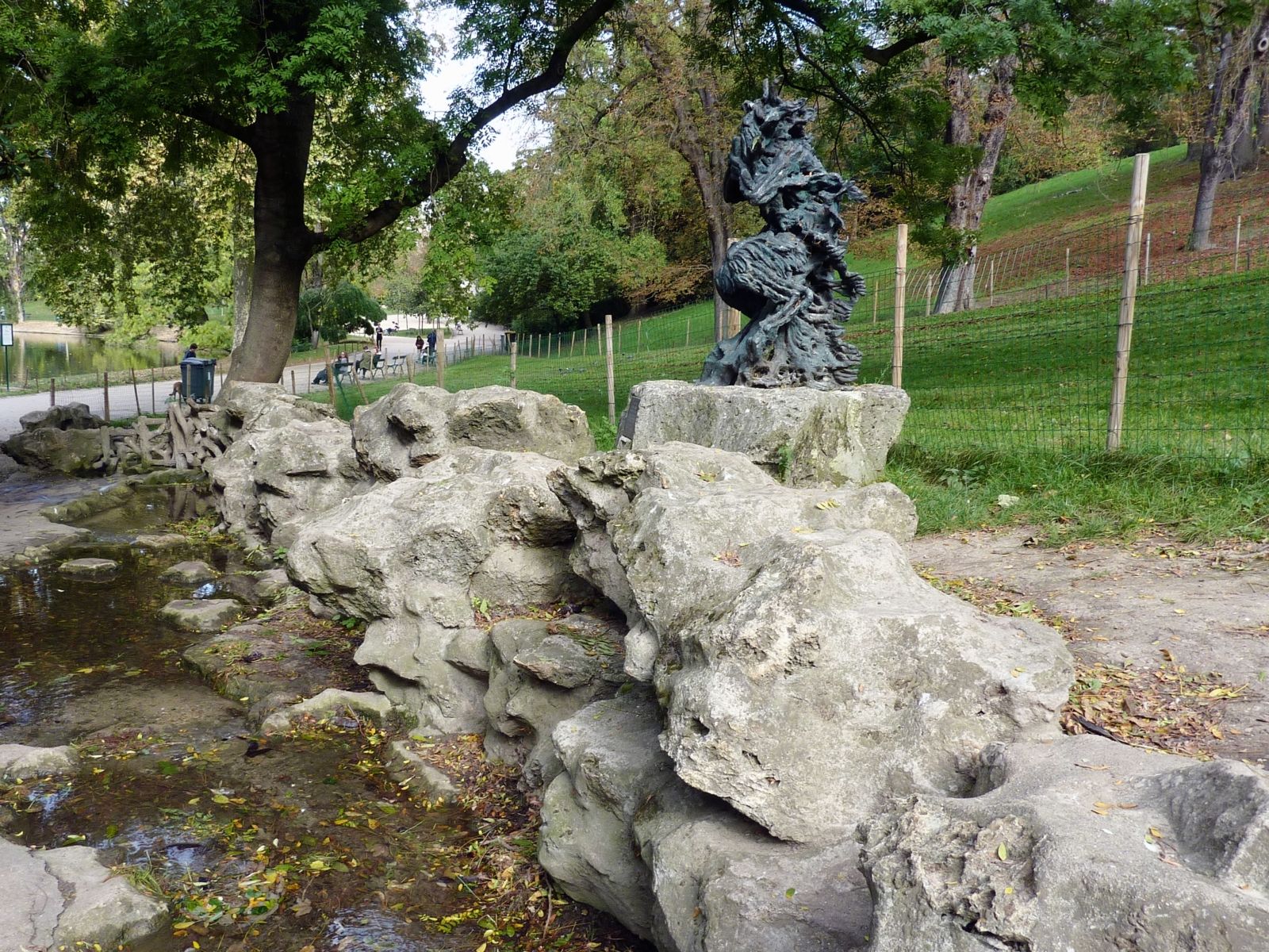 Ce jardin à l'anglaise d'une superficie de 25 hectares est le plus grand parc parisien. Il imite un paysage de montagne : passerelle spectaculaire, ponts, tunnels, grottes aux stalactites, rochers, falaises, torrents, cascades, temple d'inspiration romaine, ruisseaux, alpages, belvédères... j'en passe et des meilleures.