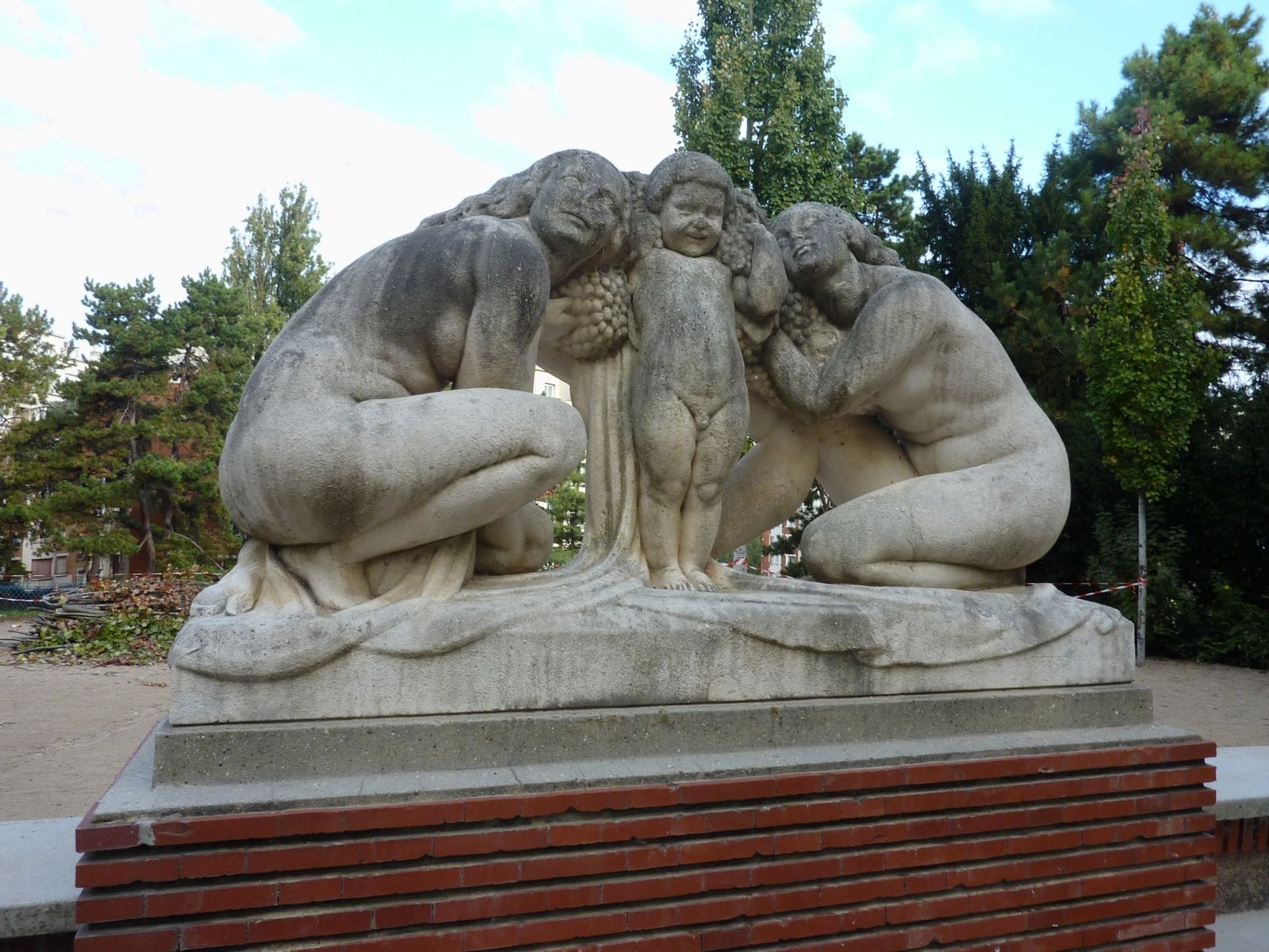 En haut de la montée, une statue de Pierre Traverse (celui qui a sculpté "l'homme" du Palais de Chaillot) représente "L'enfance de Bacchus". Elle date de 1938.