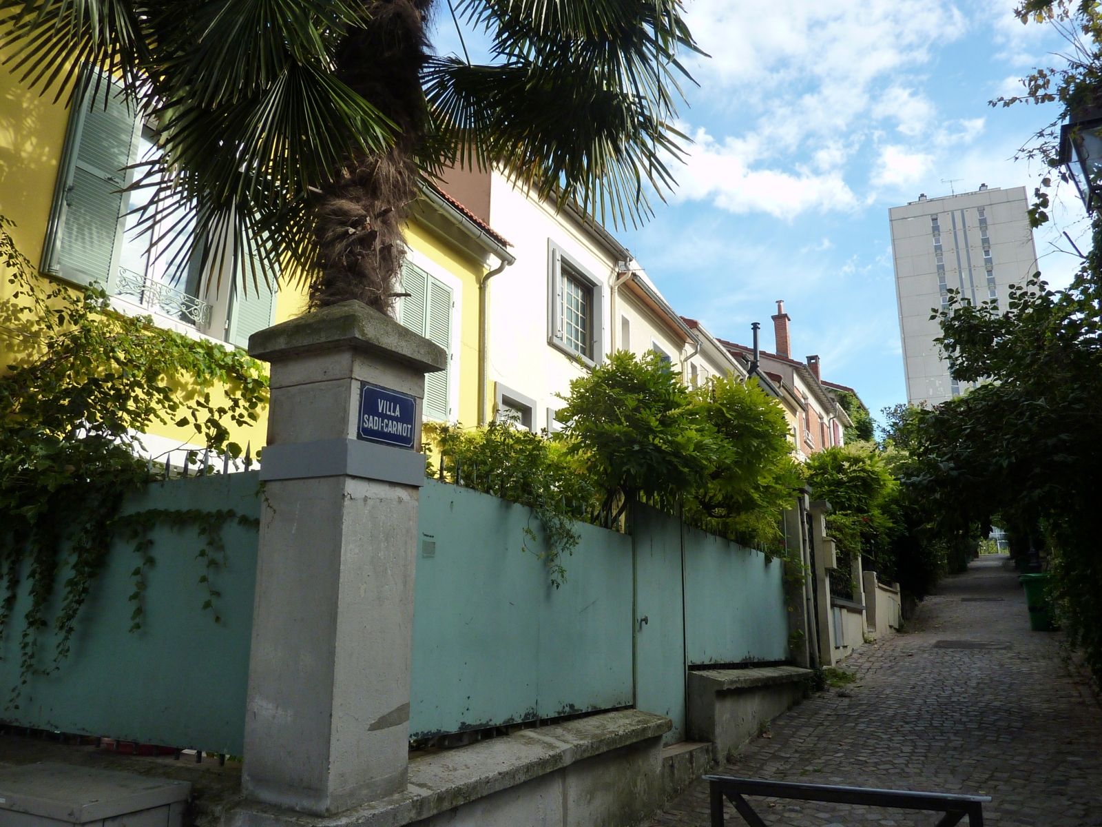 Le quartier est composé de 250 maisons d'un étage au plus, toutes mitoyennes - à cause des carrières de gypse exploitées vers 1900 - et était destiné aux ouvriers. La végétation qui y est présente donne un charme fou à ce quartier qui, je suppose, est maintenant plutôt devenu chérot... Toutes ces "Villas" donnent dans la rue de la Mouzaïa, telle la Villa Sadi-Carnot ci-dessous. Sadi-Carnot a été Président de la République du 3 décembre 1887 au 25 juin 1894, jour où il a été mortellement poignardé par l'anarchiste italien Sante Geronimo Caserio au cours d'un déplacement officiel à Lyon, à l'âge de 56 ans. Après des funérailles nationales à Notre-Dame de Paris, il est inhumé au Panthéon.