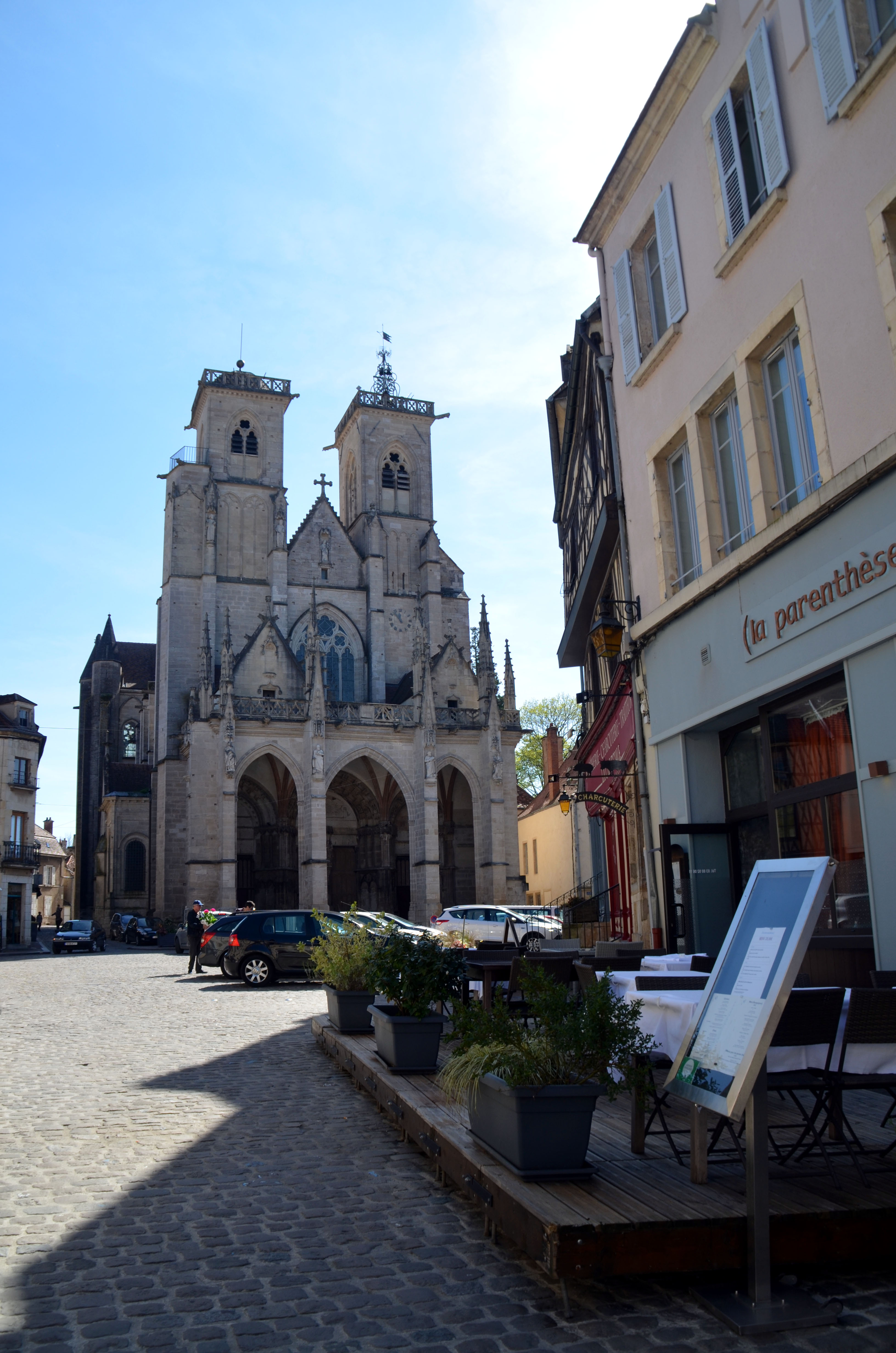 Nous voici dans la rue Frénet (qui est pavée) qui fait face à la Collégiale.