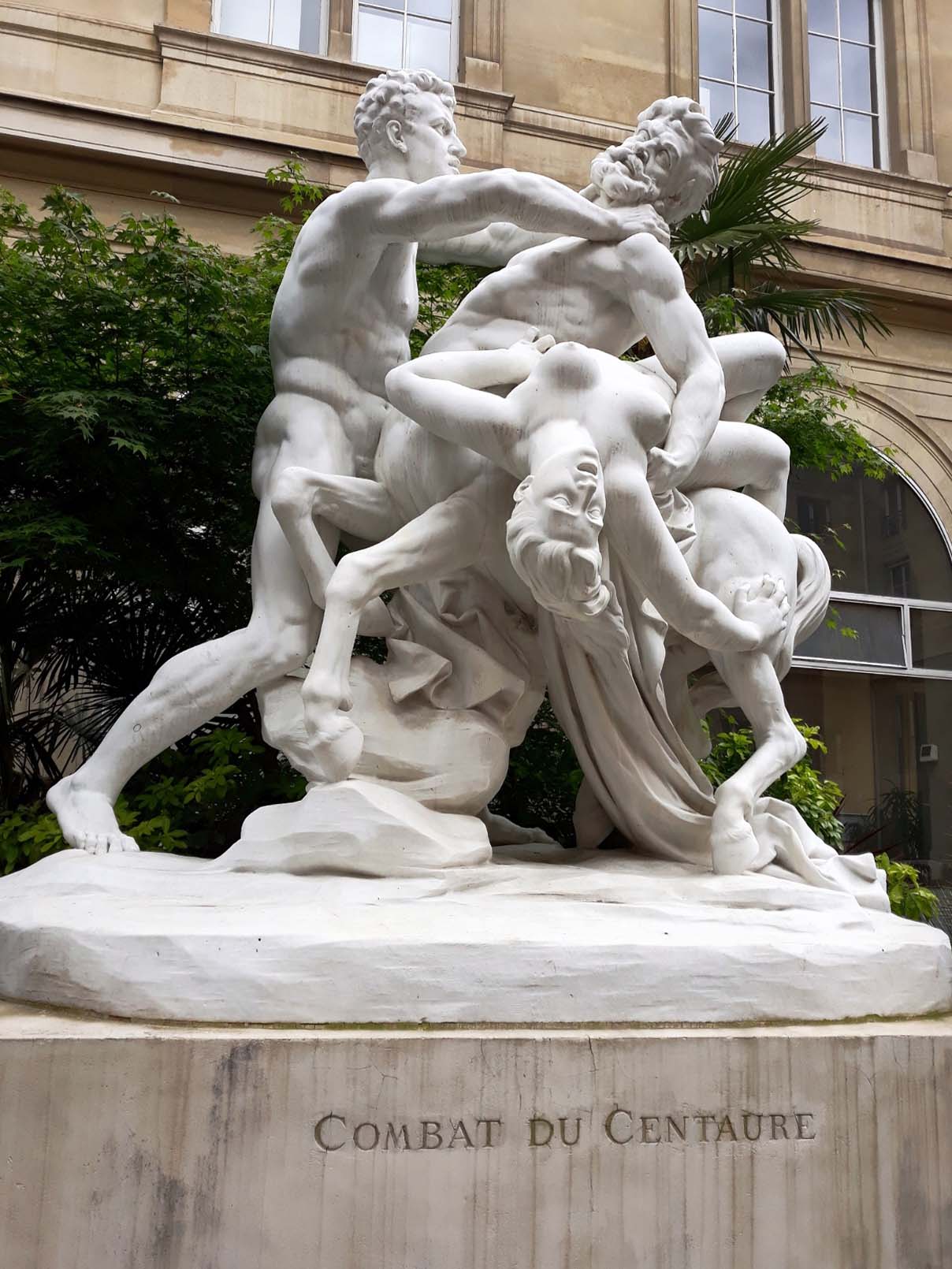 Il s'agit du Combat du centaure, de Gustave Crauk (1827-1905). Le sculpteur, très prolifique apparemment, passa paraît-il trente années sur ce groupe qui fut exposé à l'Exposition Universelle de 1900 et qui est considéré comme son chef-d'œuvre.