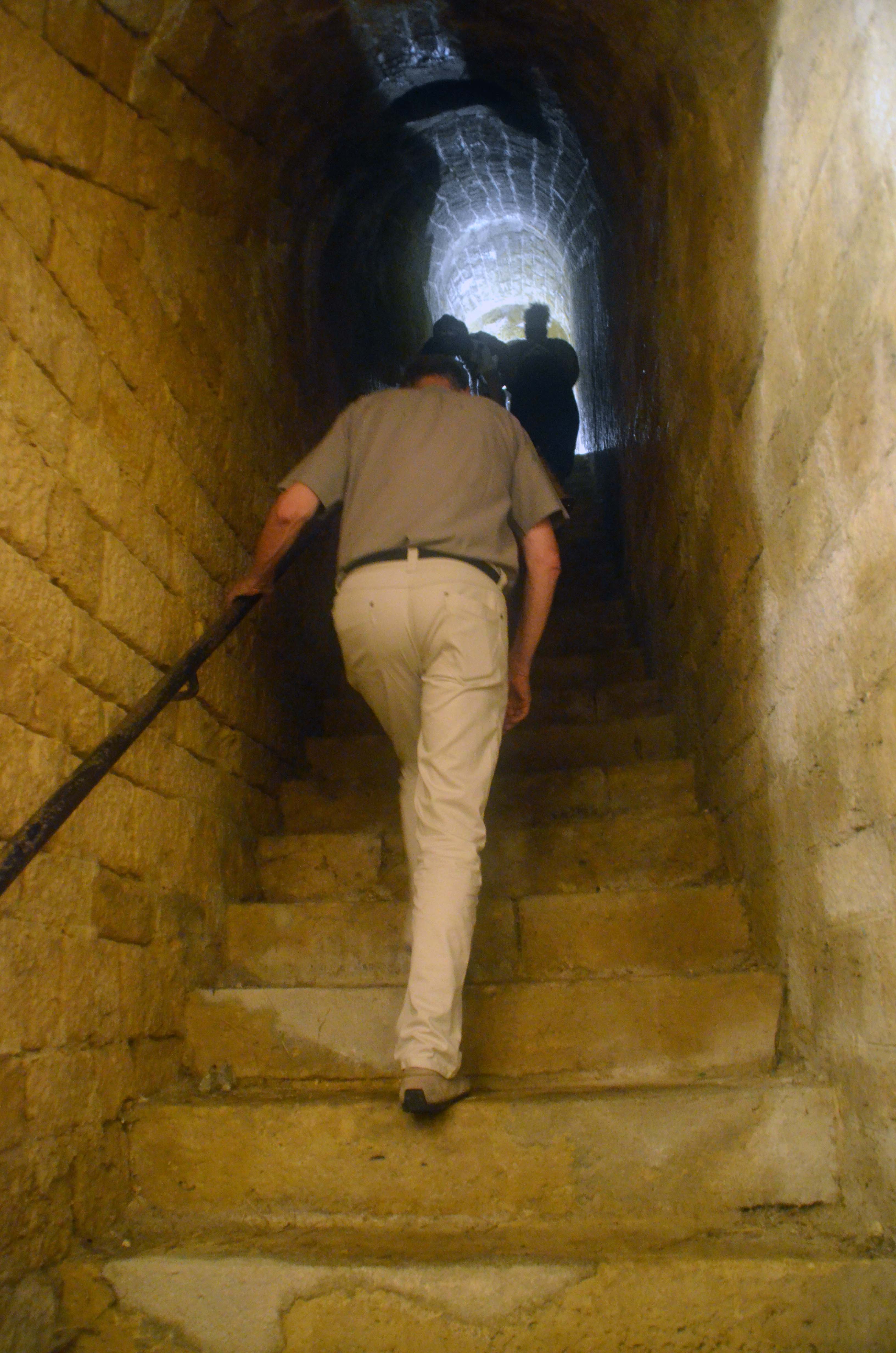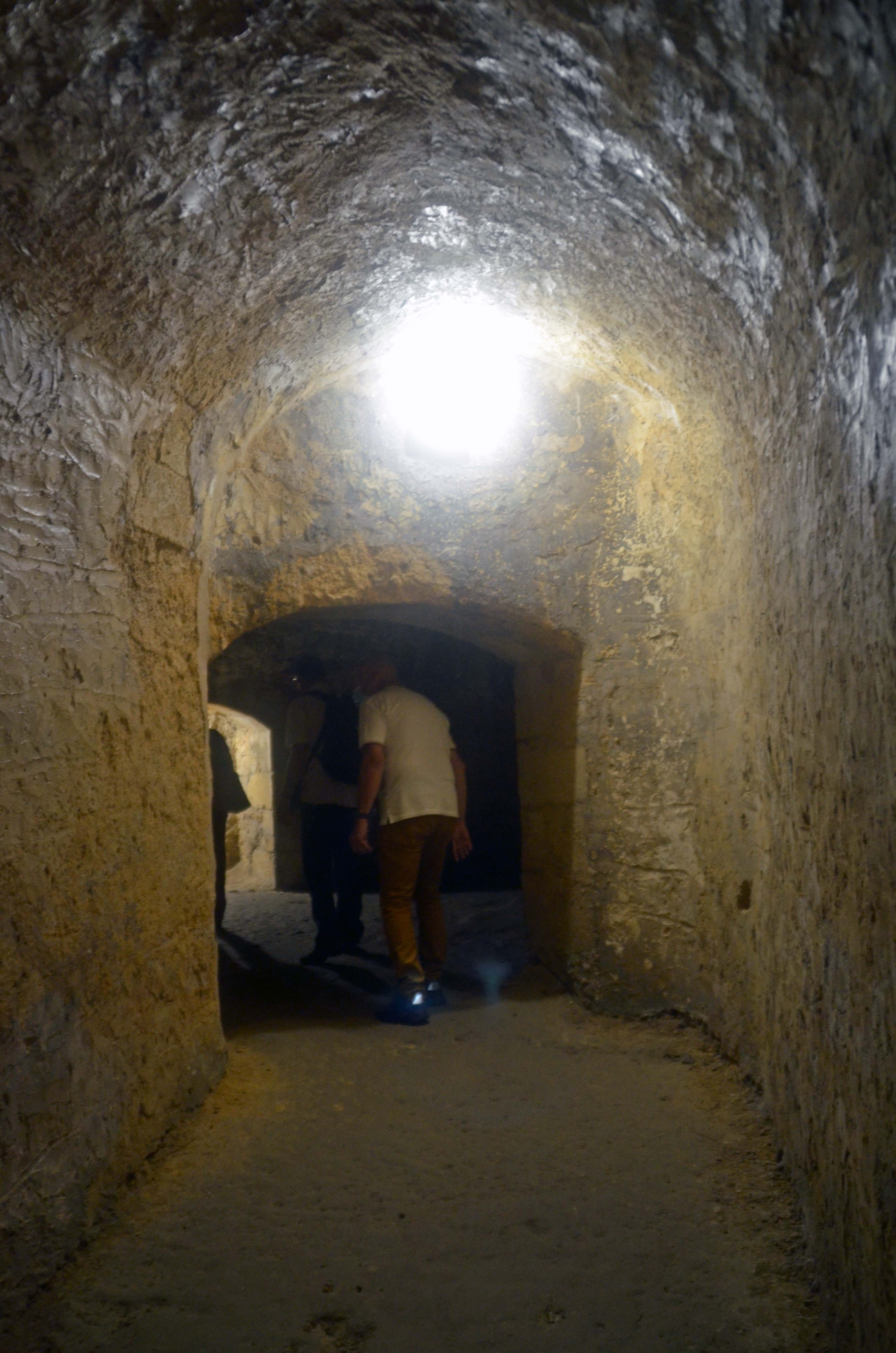 Notre guide nous fait remarquer que le couloir tourne pour éviter les tirs de canons.